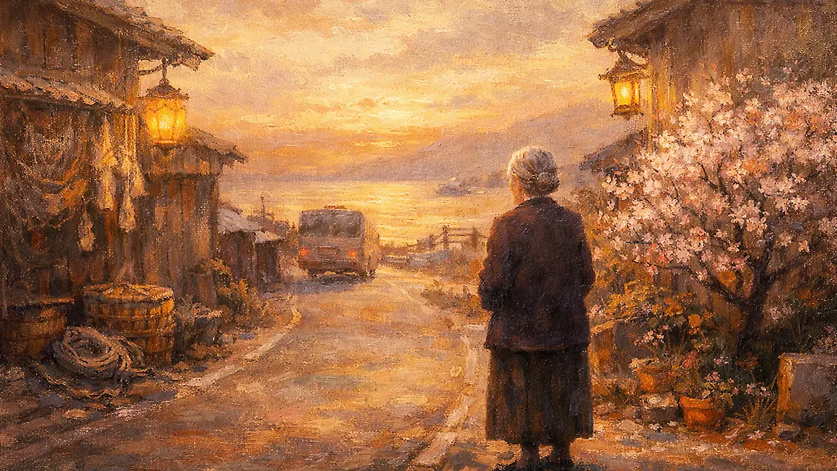 バスが来るまで、私は振り返らないようにしていた。でも乗り込む直前に一度だけ振り返った。祖母は角にまだ立っていて、こちらを見ていた。手は振っていなかった。ただ、そこに立っていた。