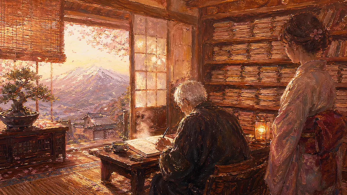 蔵の梁が軋み、窓の外で鶯が一声鳴いて、父の指の節はその朝、いつもより少しだけ強く宿帳を押さえていた。