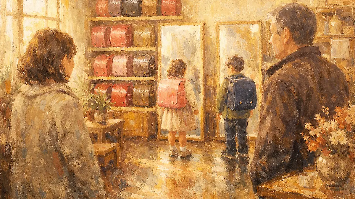 銀座の大通りに面したビルの三階、フロア一面に色とりどりのランドセルが並んでいる。赤に紺に茶色に黄色、さらには水色やラベンダーまで。ひなは入り口でいったん立ち止まり、ゆっくりと店内を見渡してから、一直線にローズ色のランドセルへ歩いていった。