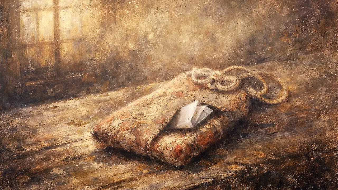 仏壇の引き出しを整理していたとき、小さな巾着袋を見つけた。中に入っていたのは、古びたお守りだった。