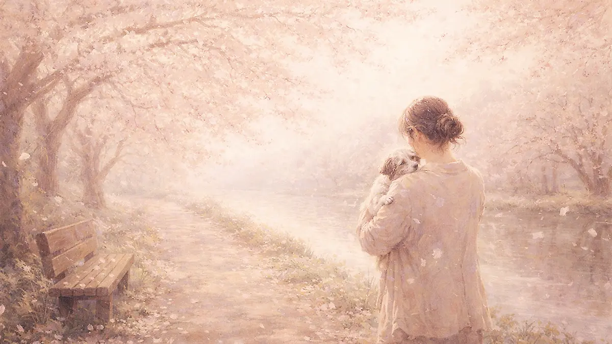 十二年が過ぎた頃、ハナは老いてきた。動きが遅くなった。散歩の距離も短くなった。でも、毎日欠かさず歩いた。川沿いの桜並木。その道は、ハナと私の唯一の共有の場所だった。